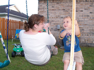 We put up a new swing for Kyle and he is a big boy now because he can get in himself.